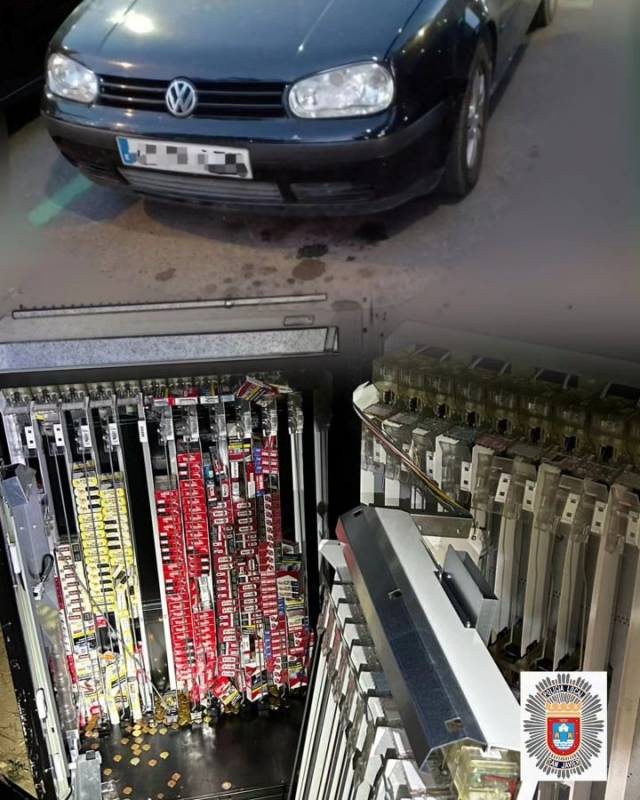 While the Guardia Civil secured the area and kept an eye on the stolen items, local police began searching the surroundings for the suspects, although they were not able to find anyone. Both the car and the cigarette machine were handed over to the Guardia Civil for further investigation.